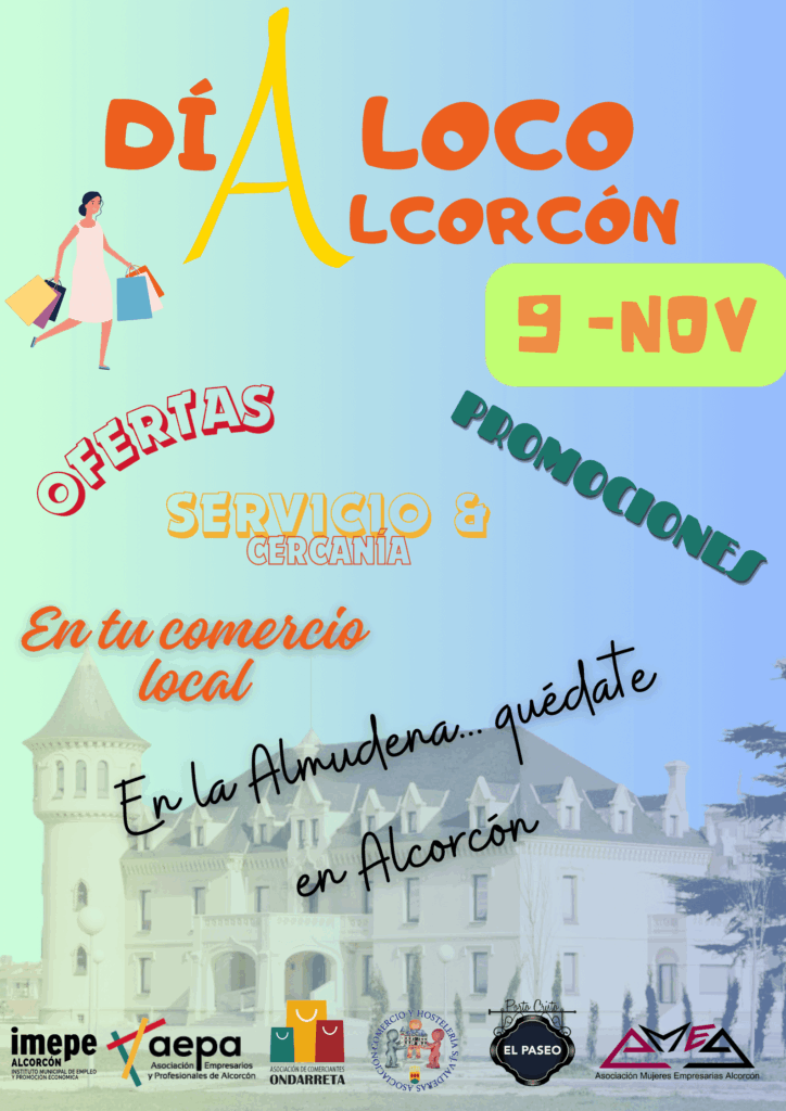 Promovida por las asociaciones de comercio y el apoyo de IMEPE, este 9 de noviembre queremos invitar a los establecimientos de Alcorcón a que nos hagan llegar sus ofertas y servicios.